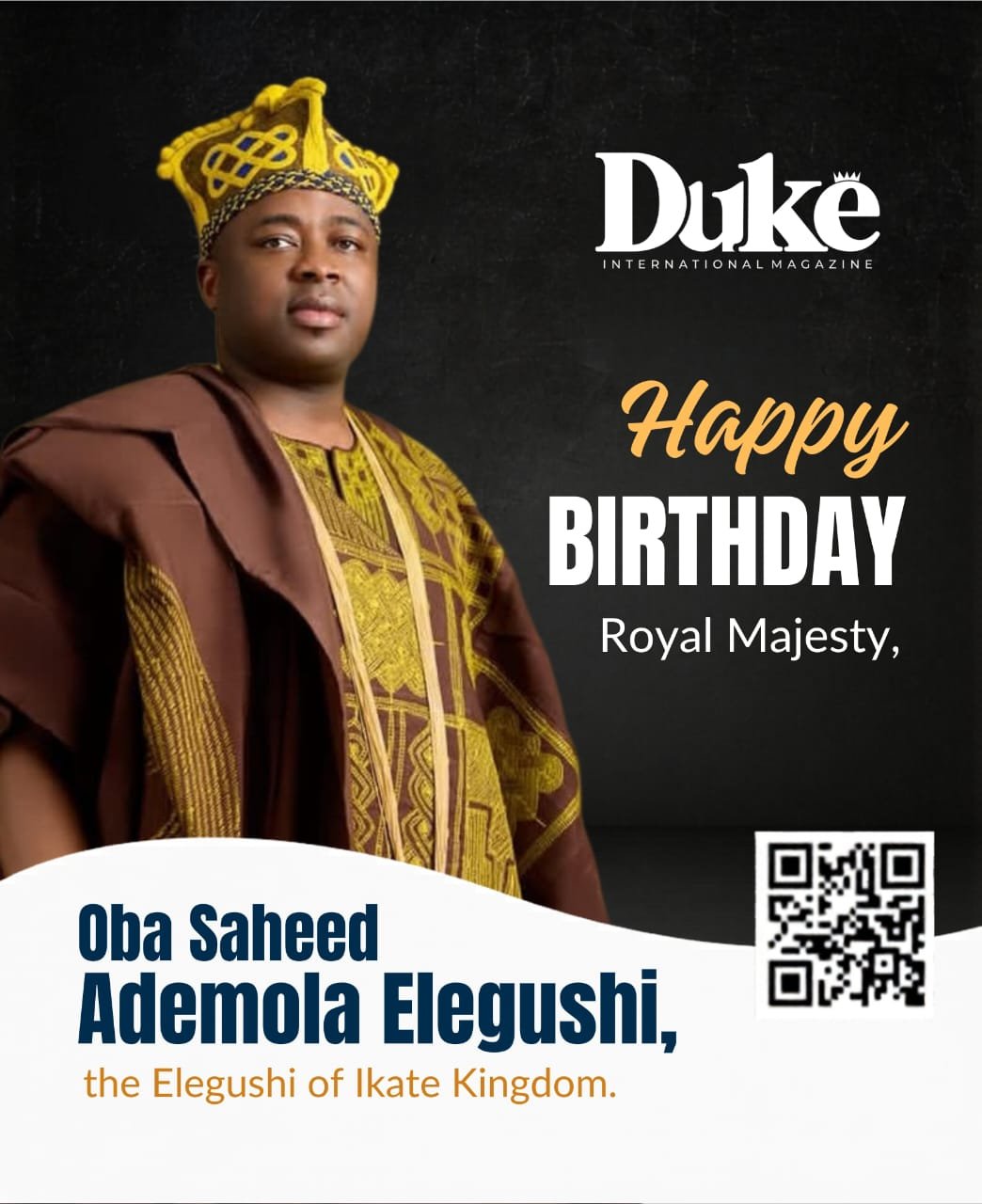 Duke International Magazine celebrates His Royal Majesty, Oba Saheed Ademola Elegushi, the Elegushi of Ikate Kingdom, on the occasion of his birthday.