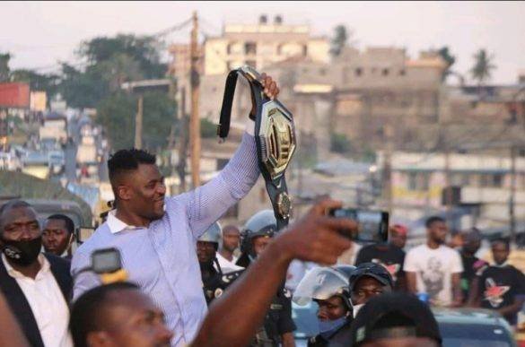 After passing through Douala and Yaoundé (Cameroon’s capital), Francis Ngannou, the world’s first African UFC heavyweight champion, took his homeland tour last weekend to his village Batié in Western Cameroon.